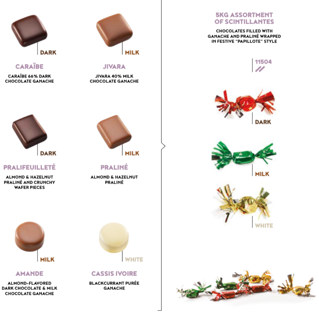 Karácsony szaloncukor nélkül? Az nem lenne ugyanaz! A mi szaloncukorjaink gyönyörűek, finomak és ellenállhatatlanok - és most egy aranyló díszdobozban ajándékozhatod. Díszítsd velük a fenyőfádat, és engedd, hogy elragadjanak az ét, tej- és fehércsokoládé ízei, 6 különböző töltelékkel. Tökéletes édes díszítés a karácsonyfádra!